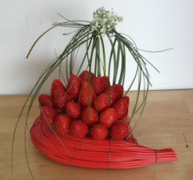 Et avec du chocolat… Un bouquet de fruits très sensuel avec une touche de gourmandise. Des fraises natures et par ci par là des fraises enrobées de chocolat.